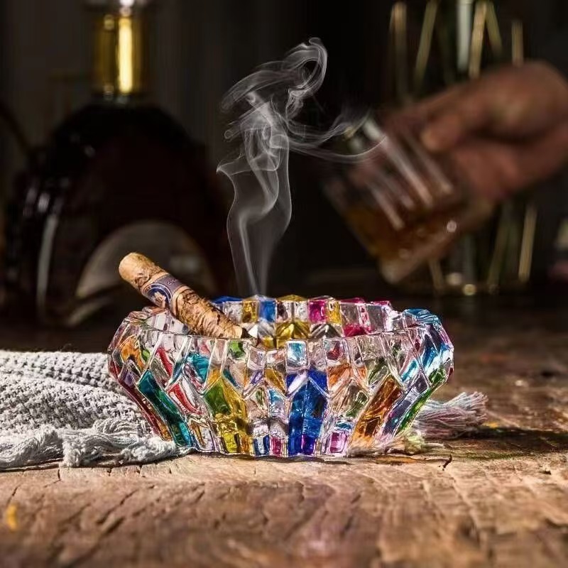 3. ক্রিয়েটিভ ক্রিস্টাল গ্লাস অ্যাশট্রে, একাধিক প্রক্রিয়াগুলির মাধ্যমে কাটা এবং পলিশিং দিয়ে তৈরি, প্রতিটি বিবরণ পণ্যের ব্যক্তিত্বকে হাইলাইট করে এবং মহৎ গুণ দেখায়।